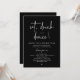 Announce your happily ever after in style with our modern minimalist casual script design wedding reception elopement dinner celebration invitation card in black and white theme. Our Happily Ever After "eat, drink and dance!" Invitation card is ideal for couples who have decided to elope and want to host a party to celebrate their union. With its sophisticated yet playful design, this invitation is sure to set the tone for an unforgettable event. The invitation card features a minimalist design with a black and white scheme, adding a touch of timeless elegance to your celebration.