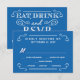 Mat, dryck och vara gift - Vintage stil rustic landsbyggsbröllop Call personlig Response Cards - Swirly, curly scrollss and old-mode woodcut typography in radiant white on Pacific Ocean ultramarine blue bakgrund. Lägg till namn och bröllop och svara på data i den här lättförståeliga mallen för använda. Elegant, men roligt och vismiskt, återskrivande stil kan enkelt ändras för dina formella eller halvformella bröllop-teman. Avslappnaden av det moderna land stil är perfekt för trendig, rustiskt bröllop med en roligt av sofistikerad charm för det traditionella paren. Kontakta oss om du behöver hjälp med anpassning om du behöver ytterligare utrymme för din information om bröllop. Andra storlekar och stilar, tillsammans med motsvarande inbjudningar, porto frimärke, samordningstillbehör och duschtjänster.