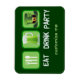 En coola St. Patrick's day magnet med ord Eat Drink och Party bredvid symbolen för att äta, en mugg av grönt öl och en sintdag leprechaun-hatt.
