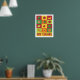 EAT FÄRG kökskonst poster i ett modernt mönster med en liten bit popkonst stil påminner oss om att äta hälsosamma frukter och grönsaker varje dag. Färga frukter och gigerna på ett bra och sansat tryck för att främja sunda matvanor och ge lite levande färg i det moderna köket. Barn kärlek också. Röda illustrationer, grönt, gult och orange frukt och grönsaker på geometriska fyrkanter gör en välsmakande explosion av färg på väggen. Bra för klassrummets använda också!