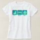 T-shirt med en boating themed design. Ät Sömnsegel med tre olika symboler, mat symboliserad av en burgare och dryck, en säng med stick figur invändigt och en segelbåt på vatten. Varje bild ställs in i en rundad kvadrat med en grönt i grönt färg.