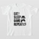 Power up your child’s style with this fun “Eat Sleep Game Repeat” t-shirt! 🎮 Featuring bold text with playful icons like a controller, bed, and fork, this design perfectly captures the daily routine of young gamers.