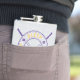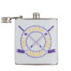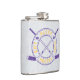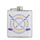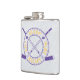 2 vintage i färg är ett utseendemönster i kontrasterande guld och lila färger. Med korsade hockeysticks och hockeypucks, och texten EAT SLEEP SPELAY HOCKEY.