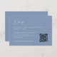 Designat för att samordna med vår inbjudan till bröllopsinbjudan från Ebb Tide, har det här enkla och chic bröllop-svarskortet vit text på en dammig periwinkle blue bakgrund. Anpassa QR-koden så att gästerna enkelt kan söka och OSA. En elegant och tidlöshet letar efter sommaren bröllop.