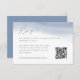 Det här enkla och chic bröllop-svarskortet är designat att samordna med vår inbjudan till bröllopsinbjudan från Ebb Tide och har grått-bokstäver på vit bakgrund med en tvätta av kustblå vattenfärg högst upp. Anpassa QR-koden så att gästerna enkelt kan söka och OSA. En elegant och tidlöshet letar efter sommaren bröllop.