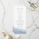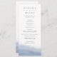 Det här bröllopsprogrammet för kustnära chic matchar vår Ebb Tide-samling med en ren vattenfärg tvättat av dammig periwinkle blue längs grund, med anpassningsbarna i mjuk grått-text. Anpassa framsidan med ditt ceremoniprogram och lägg till bröllopsfesten på baksidan.