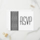 Chic och det moderna Postkort för svar på Chevron Gräns Bröllop med ett enkelt chevron mönster gräns i svartvitt. Den här snyggten anger tonen för ett elegant bröllop. Enkel att anpassa, lägg bara till din bröllop-information i den text fält tillhandahåller. Klicka på Anpassa om du vill söka efter fler anpassningsalternativ.