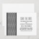 Elegant och modern Chevron Kant Spara Datum Annonsering med ett enkelt sicksackmönster i svart och vitt. Denna stilrena design sätter tonen för ett elegant bröllop. Lätt att anpassa, lägg bara till din bröllopsinformation i de tillgängliga textfälten. Klicka på "Anpassa" för fler anpassningsalternativ.