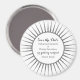 Sofistikerad och elegant Deco Retro Spara datum magneter med en cirkelformad dekretativ solsprängningsdesign. Enkel att anpassa, lägg bara till din bröllop-information i den text fält tillhandahåller. Klicka på Anpassa om du vill söka efter fler anpassningsalternativ.