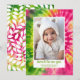 FRONT - Använda ett lodrät-foto och gör ett unikt och trendig nytt år hälsning med ett skriptteckensnitt på framsidan och slit-mönster för bakgrunden. Färg kan användas för en färgfull jul hälsning eller för ett nytt års hälsning. BACK - Retro Tie-Dye Mönster i Grönt, Shock rosa och Gult - en Julhälsningar med 70-talsvamp.