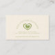 Enkel professionell av ekografika affärskort i en grönt eller anpassa med ditt eget färg-val. Kortet har en enkel modern grafisk hjärtformad bild med två löv miljömässig ekomiljömässig logotyp stil. Perfekt för miljövänliga bomullskläder, butique eco-mode, återvunna kläder från mode eller andra miljövänliga konfektionsföretag. Anpassa med ditt eget företagsnummer namn, adress, namn, webbplats och mobilare nummer. Andra matchande artiklar är tillgängliga. Design och teckningar efter www.mylittleeden.com