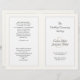 Bröllopsprogrammet med kyrka med provformulering för en katolsk ceremoni i giftermål - detta är bara ett exempel och är inte avsett att vara den rätta ordningen för ceremonin. Fyll i mallarna efter behov. Ecru, benvit färg med vita paneler för ordalydelse i fyra mallområden. När pappra viks - av köparen blir det ett hopfogat program med fyra sidor - fram och tillbaka - varje lakan i pappra är ett program. Parets titel, namn, datum och plats står på framsidan. Baksidan har två mallar för en skriptversa, "Kärlek är patient" är provet och en anteckning från paret. Insidan kommer att vara sidorna för ceremonin och listan över bröllopsfest, tjänsteman, musiker osv. som du väljer.
