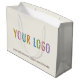 Ibland behöver du bara några anpassade presentpåsar, så här är ett bra sätt att få precis vad du behöver i den färg och design du vill ha. Anpassa denna presentpåse online med din egen företagslogotyp, anpassad text och färg. Tillgänglig i matt eller glansig finish. Den största storleken är 12,5 tum x 4 tum x 9 tum. Tillverkad av Digiwrap. Ingen minsta beställningskvantitet och ingen installationsavgift.