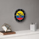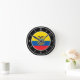 Ecuador Flagga Round Clock med Ecuador-flagga placerad i mitten och vackra vita klocknummer på klockan kant. Den fina svarta bakgrunden med vit oval inslag slutför designen och lägger tonvikten på elegansen. En vacker kombination av svartvitt och skicklig integrering av det nationella flagga gör den här klockan till perfektens gåva och den underbara show biet på väggen. © 2022 LänderAvVärlden