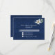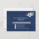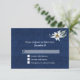 Svarskort för OSA i elegant bröllop, med europeisk påverkan, i en blå dämpare med grafik med en enda vit Edelweiss-blomma, överst. Anpassa den vita anpassningsbarna till kostym efter dina behov.