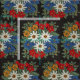 En avbilda av en blommönster med en needleworklook av alpina blommor för Edelweiss vit av Europa på din produkt. Slösa, röda, gula och vitfärger. Leontopodiumalpinum av Schweitz, Tyskland och Österrike.
