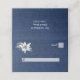 Elegant bröllop stil placerar kort, med europeiskt inflytande, i en blå damm med en enda vit Edelweiss-blomma, högst upp. Anpassa för hand för varje gäst som är närvarande.
