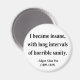 "Jag blev galen, med långa pauser av fruktansvärd godhet."