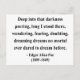 "Djupt in i mörkret, så länge stod jag där och undrade, undrade, tvivlade, drömde drömmar som ingen dödlig nånsin vågat drömma om förut."