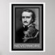 Raven säger naturligtvis "aldrig mer". Ett vackert svart och vitt tryck med Edgar Allen Poe och Raven sida vid sida.