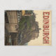 Ett klassiskt vykort från Edinburgh, Skottland, med det stora Edinburgh-slottet på dess backe. Innehåller muterade toner i vintagen, ett texturerat pappert överlägg och fet "Edinburgh"-stil för en gammal charm.