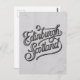 En handskriven design med ord "Edinburgh" och "Skottland" i ett fet, kursivt teckensnitt. Letteringen placeras på en texturerad bakgrund som skapar en vintage och en rustik känsla.