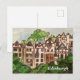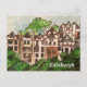 Attraktiv, färglös, vattenfärgad målning (på vykort) av Ramsay Garden - ikonhusen bredvid Edinburgh-slottet.