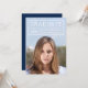 Modern fotoinbjudan med student-studentfesten i ett rutnät i vitt på framsidan. Kortet har en redigerbar bakgrund i färg (klicka på anpassa för att ändra) på baksidan. Anpassa den genom att ersätta platshållartexten och ersätta exemplet/platshållarfotot med ett eget foto. Om du vill ha fler alternativ som att ändra teckensnittet och det är storlekt/färg eller mellanrummet mellan brev klickar du på knappen "Anpassa". *Observera att Zazzle Watermark som visas i zoomförhandsvisningen INTE visas på den färdiga tryckta produkten. © Rosewood and Citrus