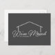 Vi har flyttat vykort med en dispositionslsilhuett av ett hus och ord "Vi har flyttat" allt mot en redigerbar bakgrund färg (klicka på anpassa för att ändra) längst fram. Anpassa den genom att ersätta platshållartexten. Om du vill ha fler alternativ som att ändra teckensnittet och det är storlekt/färg eller mellanrummet mellan brev klickar du på knappen "Anpassa". *Observera att Zazzle Watermark som visas i zoomförhandsvisningen INTE visas på den färdiga tryckta produkten. © Rosewood and Citrus