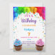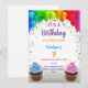 Featuring a cute Balloons & Cupcake design. Party Invite Canva Template for easy editing.