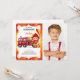 Editable Boy Fire Lastbil Birthday Photo Inbjudningar