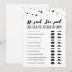 Köp det här redigerbara spelet och njut av hög kvalitet. Hon sa kort för ditt evenemang! Gissa vem som sa det? Bride eller Groom? Det här är en spelmall. Du kan ändra frågorna som du vill! Svartvit design.
