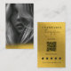 Ett vackert designat lyxfritt guld-affärskort som innehåller fullt-fotot och dina egna medieikoner, titel, QR-kod och social-medieferenser. Perfekt för mediainflytelseriker från social och skapare från innehåll. Ett enkelt och professionell social-mediainflytande och affärskort till skapare av innehåll. Anpassa och gör det till din egen!