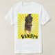 This T-shirt features a photograph of a dog with its name and an illustration of a paw print below against a yellow starburst design. You can change the dog's photo for one of your own pet. You can also change the name of the pet as well as the font style, size and colour.
