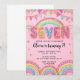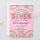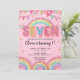 Editable Pink Rainbow Sequin 7th Birthday Invitati Inbjudningar