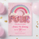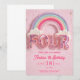 Editable Rainbow Fourth Birthday Invitation, Pink Inbjudningar