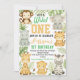 Fira din lilla födelsedag med den här berömvärda "Vild 1"-djungelns safari-temade inbjudan! Den här inbjudan är perfekt för en roligt och vild i första födelsedagsfesten med söta vattenfärgsdjur som apa, elefant, tiger, giraffe, zebra, lejon och hippo, omgivna av lush tropiska löv. Anpassa den med ditt barns namn, datum, tid och plats i party. Perfekt för en pojkes eller flickas djungeltemerade party.