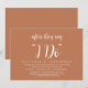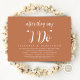 Meddela och er lyckliga allt efter i stil med vår moderna temadesign (efter att de säger "I DO"), bröllop-inbjudan till firande. Det är idealiskt för par som har beslutat att fira sin bästa dag. Med sin sofistikerade men lekfulla utformning kommer inbjudan säkert att ange tonen för en händelse som inte kan glömmas bort. Inbjudningskortet har en modern design, ett rödbrunt tema för kopparrost, vilket gör att du får en liten elegans i firande. Designad av TeeshaDerrick
