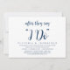 Meddela och er lyckliga allt efter i stil med vår moderna temadesign (efter att de säger "I DO"), bröllop-inbjudan till firande. Det är idealiskt för par som har beslutat att fira sin bästa dag. Med sin sofistikerade men lekfulla utformning kommer inbjudan säkert att ange tonen för en händelse som inte kan glömmas bort. Inbjudningskortet har en modern design, ett marint blått tema, som ger dig en aning elegans i firande. Designad av TeeshaDerrick