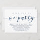 Modernt manus Klassiskt marinblått tema, vigsel inbjudan kort (Efter vi gör det, vi festa). Det är perfekt för din informella vigsel firande vid sjön.