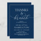 Vackert, modernt, blått romantiskt skript, inbjudningskort efter bröllop (tack för en Brunch). Det här är perfekten för er befattning och er utlandsman bröllop firande. Lägg till information i matchande färg, teckensnitt/text. #TeeshaDerrick