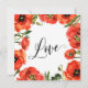 Med hjälp av ett elegant, virvlande modernt skrivstil har jag skapat en grafisk överlagring som lyder "After the Wedding Celebration", för att komplettera den sofistikerade versaler serif-teckensnittet som används för dina detaljer. Samma "fancy font" användes för att placera ordet "Love" på baksidan. Texten accentueras med en akvarellkrans av ljusröda vallmor. Alla lager lades till separat och lämnades olåsta för att ge dig betydande designkontroll; gör de ändringar som behövs för att skapa det kort du föreställer dig. Om det behövs kan du rotera kransen för att bättre passa din formulering. Tveka inte att höra av dig till mig om du behöver anpassningshjälp eller har särskilda önskemål. // 119 //
