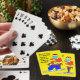 Lönsam tecknad av en man som håller en hand av att spela kort medan han bär personlig skyddsutrustning bestående av gummihandskar av gult och en blå mask av ansikte. På texten står det: "Namn hoppades att hans PPE inte skulle påverka hans rörelseförmåga." Kort kallas Post Lockdown Pack of Cards. Anpassa enkelt dessa spelkort genom att redigera malltexten. Tack för att du visar min tecknad design!