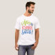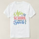 Den här designen har en vit t-shirt med texten "After SCHOL Snack" i ett stiliserat teckensnitt med många färg. I designen ingår bilder av en bok, en klocka och en penna.