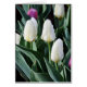 En genomgående storm avfyrar fukt på tre vita tulpaner. Observera att kortet kan anpassas med din egen personliga inskrift.