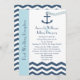 Denna efterbröllopsinbjudan har ett nautiskt tema och visar orden "Post Wedding Reception" till vänster på en ljusblå remsa, men designens fokuspunkt är ett ankare med en hjärtkedja som kastas i ett chevron- eller sicksackhav. Du kan anpassa inbjudan med namnet på bruden och brudgummen, datum och plats för äktenskapet och alla dina detaljer för efterbröllopsinbjudan. Copyright henishouseofpaper