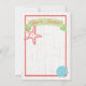 Gift dig i en tropisk destination och vill nu dela din kärlek med familj och vänner? Då är denna strandinbjudan med snigelskal perfekt för dig! Vacker och modern med rolig typografi. Funktioner korall, mjuka gröna och blå sjöstjärna och snigelskal mot en sandfärgad randig bakgrund. Perfekt för en bröllopsfest med beachtema. Handritad illustration av McBooboo.