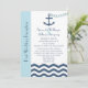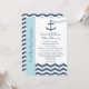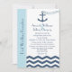 Denna efterbröllopsinbjudan har ett nautiskt tema och har orden "Post Wedding Reception" till vänster på en ljusblå remsa, men designens fokuspunkt är ett ankare med en hjärtkedja som kastas i ett sicksackhav. Du kan anpassa inbjudan med namnet på bruden och brudgummen, datum och plats för äktenskapet och alla detaljer om din efterbröllopsinbjudan. Copyright henishouseofpaper