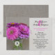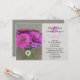 Denna inbjudan till efterbröllopsfesten visar en rustik masonkruka med er monogram. Masonkrukan är fylld med rosa och lila zinnia-blommor direkt från trädgården med en bakgrund som ser ut som säckväv. Alla detaljer om efterbröllopsfesten visas till höger. Utseendet med säckväv fortsätter på baksidan av inbjudan och gör den till en mycket snygg sommarblommig fotografisk inbjudan till efterbröllopsfest med monogram. Copyright henishouseofpaper