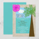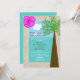 Gift dig i en tropisk miljö och vill fira med en efterfest med tropiskt eller strandtema? Denna fina inbjudan till efterfest kan vara den perfekta inbjudan för dig. Med en hibiskus i det övre högra hörnet i en klar rosa färg, är designen kantad med vad som ser ut som sand med ett palmerträd till höger. Brudens och brudgummens namn visas i himlen och detaljerna om efterfesten visas i havet. Ett bra sätt att inbjuda dina gäster till en efterfest efter ett destinationbröllop. Copyright henishouseofpaper